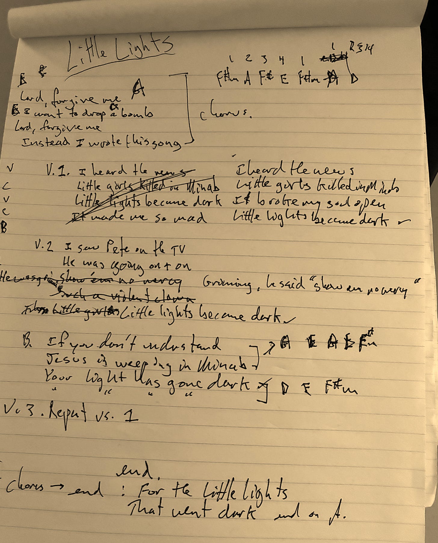 I wrote this song not long after the tragic bombing of an elementary school for young girls in Minab, Iran. It is written out of a deep sense of grief that I have struggled to fully comprehend. It is also written out of a deep anger towards the perpetrators of this evil act.